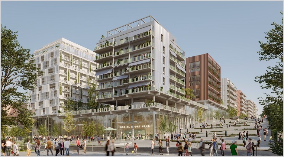 Construction de plusieurs immeubles de logement dans le cadre des JO pour Solideo. Si dans un premier temps ces ouvrages sont destinés à loger plus de 2000 athlètes, ils accueilleront à terme, pour la phase Héritage, et ce, dès la rentrée 2025, des logements, commerces et de nombreux services. Une surface plancher de 32 722 m² de logements, une résidence étudiante de 149, une résidence sociale de 60 logements, un parc de stationnement de 305 places en souterrain, des commerces et des services en rez-de-chaussée.